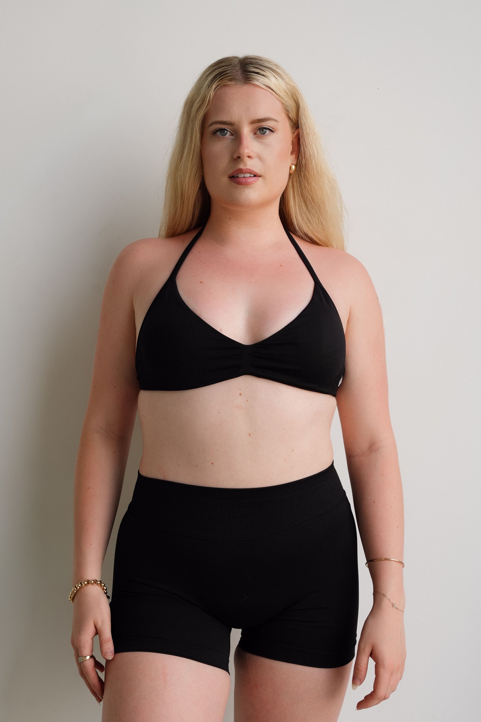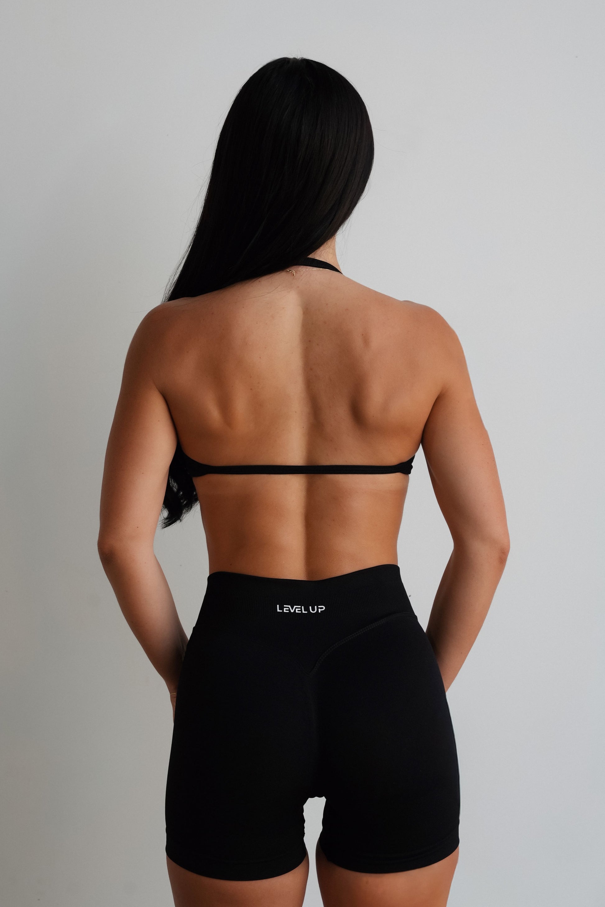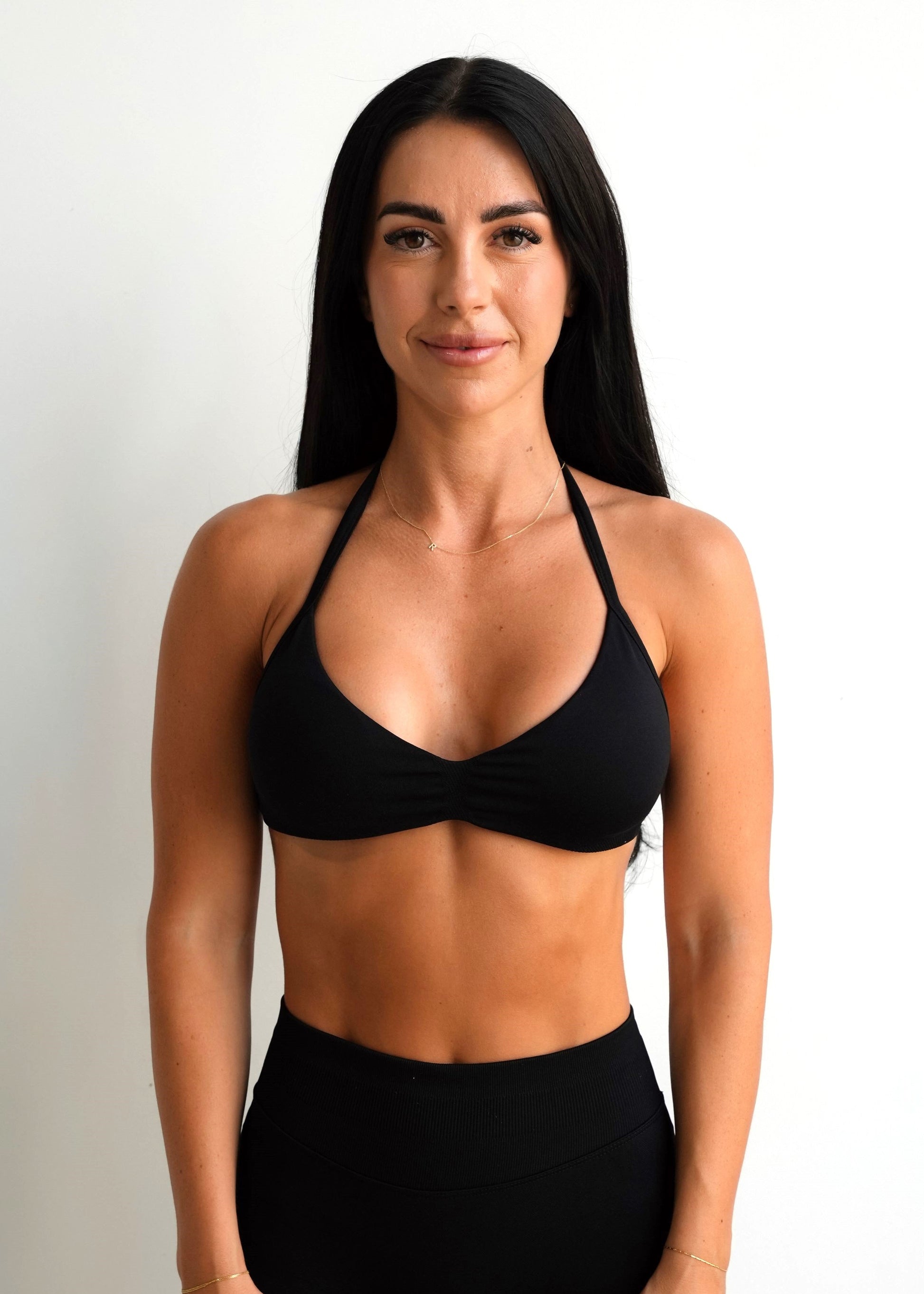 The Vital Refine Crop, is a halter-style design featuring a soft rouged front that enhances the upper torso and contours naturally to your shape. The open back and thin halter strap create an elegant silhouette while giving you full freedom to move. Complete with removable padding for adaptable support. This crop combines beauty, comfort, and performance in one sleek design.